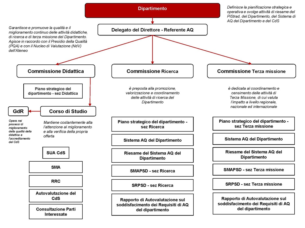 A livello dipartimentale i processi e le procedure di AQ riflettono le modalità con cui a livello centrale sono programmate le azioni che consentono di realizzare e migliorare le politiche definite dagli Organi di governo e declinate nel Piano strategico di Ateneo. In questo modo, anche il Dipartimento di Diritto Privato e Critica del Diritto contribuisce a promuovere il miglioramento continuo dei processi di AQ e a perseguire obiettivi di sviluppo e miglioramento, tramite azioni coordinate che garantiscono una precisa definizione di ruoli, responsabilità, processi e tempi, operando con la massima trasparenza.